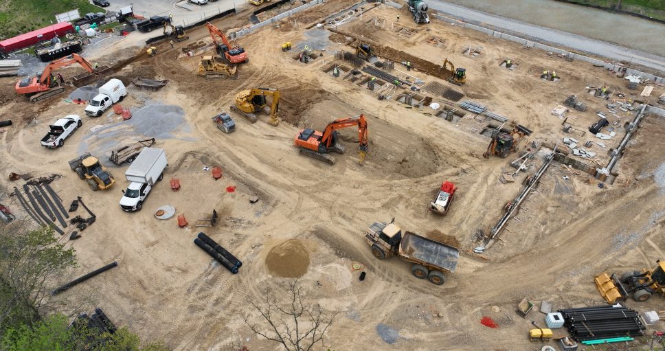 Work continues at the future Flagship Carwash location in Owings Mills, Maryland. Recent aerial views highlight ongoing work that is setting the foundation for the next stages of construction.
